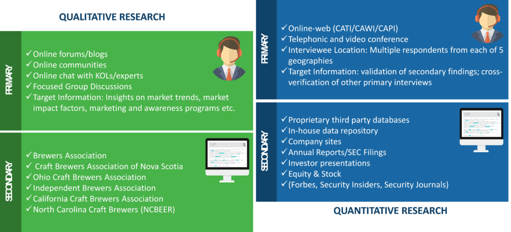 The research process began with obtaining historical market sizes of the entire craft beer market and the share of each type of segmentation, through exhaustive secondary research to understand the potential of the market under the prevailing market environment during the past years. The growth rate of the market and its segments was studied with a comparative approach to understand the impact of factors that shaped the market during the recent past.